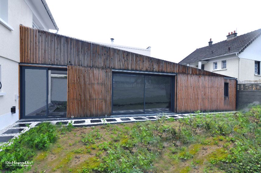 A Ormesson-sur-Marne, l’extension de cette maison familiale sur le jardin sert d’abri extérieur mais peut également se transformer en chambre d’appoint, voir en studio autonome.
